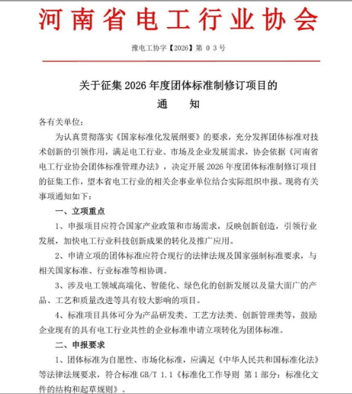 关于征集2026年度团体标准制修订项目的通知