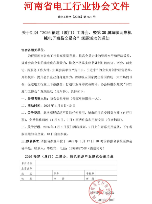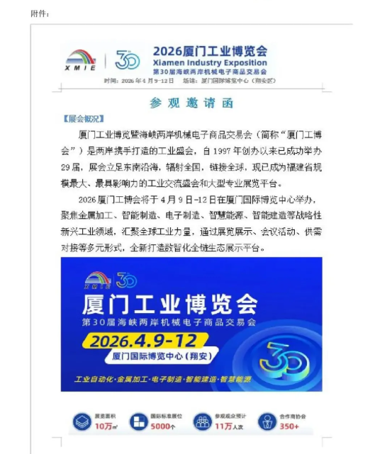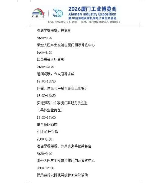 关于组织“2026福建(厦门)工博会、暨第30届海峡两岸机械电子商品交易会”观展活动的通知