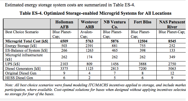 研究人员指出,采用磷酸铁锂电池的储能系统由于使用寿命长、自放电率低而成为四个军事基地的最佳储能方式。出于同样的原因,液流电池被认为是韦斯特弗空军基地的最佳电池储能系统。