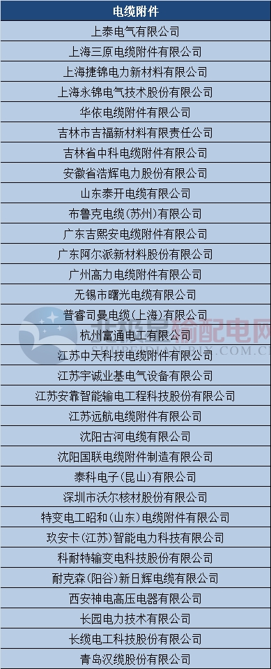 下为35kV及以上电缆附件供应商名单公示