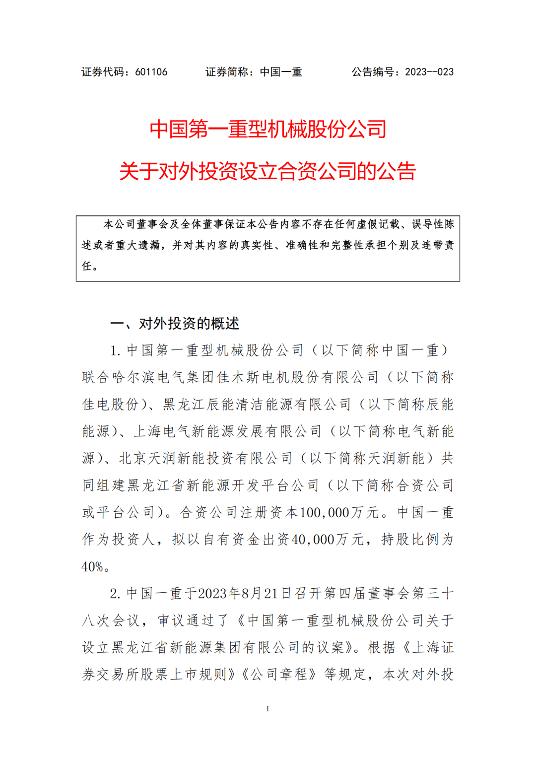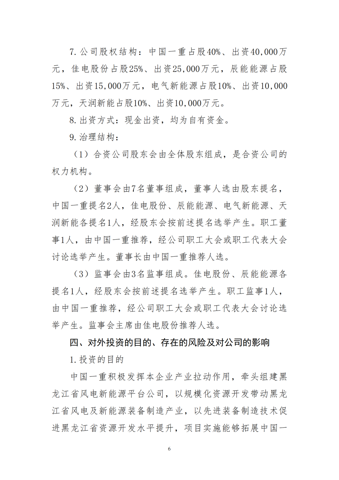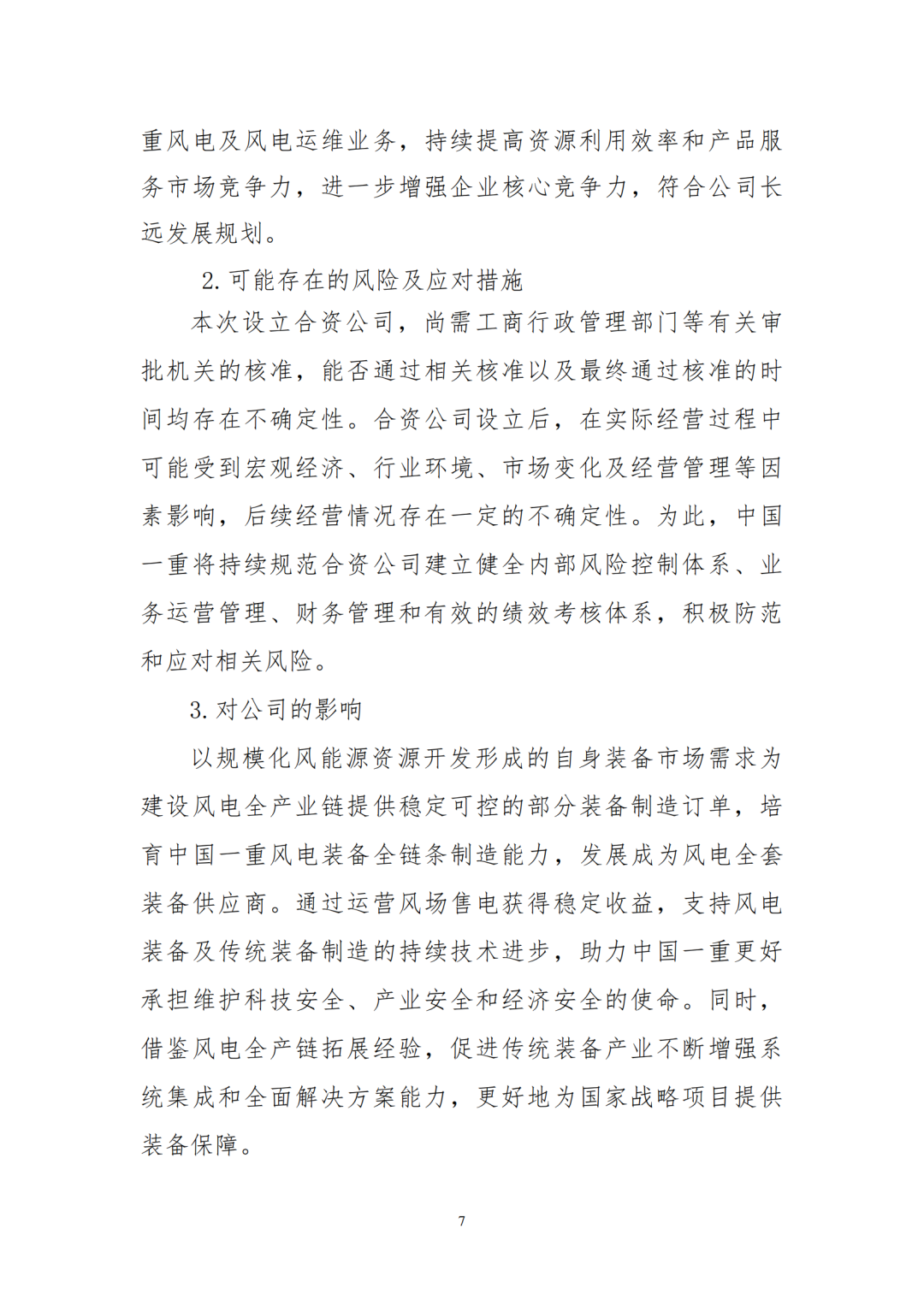 中国一重表示,牵头组建黑龙江省风电新能源平台公司,将以规模化资源开发带动黑龙江省风电及新能源装备制造产业,以先进装备制造技术促进黑龙江省资源开发水平提升,项目实施能够拓展中国一重风电及风电运维业务,持续提高资源利用效率和产品服务市场竞争力,进一步增强企业核心竞争力。