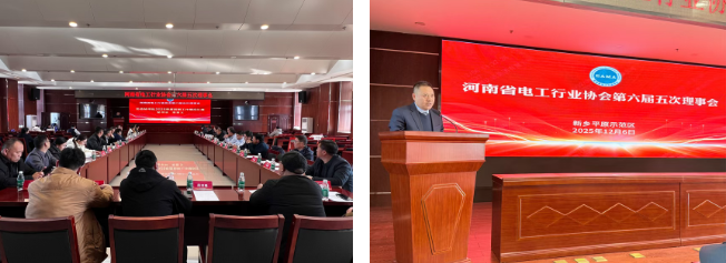 2025年12月6日,河南省电工行业协会第六届五次理事会暨2025年度团体标准评审会在平原示范区隆重召开。本次会议以“聚焦高质量发展,强化标准引领,深化协同协作”为主题,平原示范区管委会副主任 王永刚、商务局局长 王通伟、河南省电工行业协会会长金世强、协会理事会成员及会员企业代表齐聚一堂,共话行业发展新机遇,共商产业升级新路径。