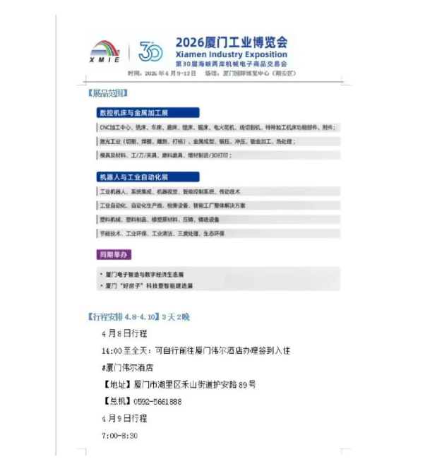 关于组织“2026福建(厦门)工博会、暨第30届海峡两岸机械电子商品交易会”观展活动的通知