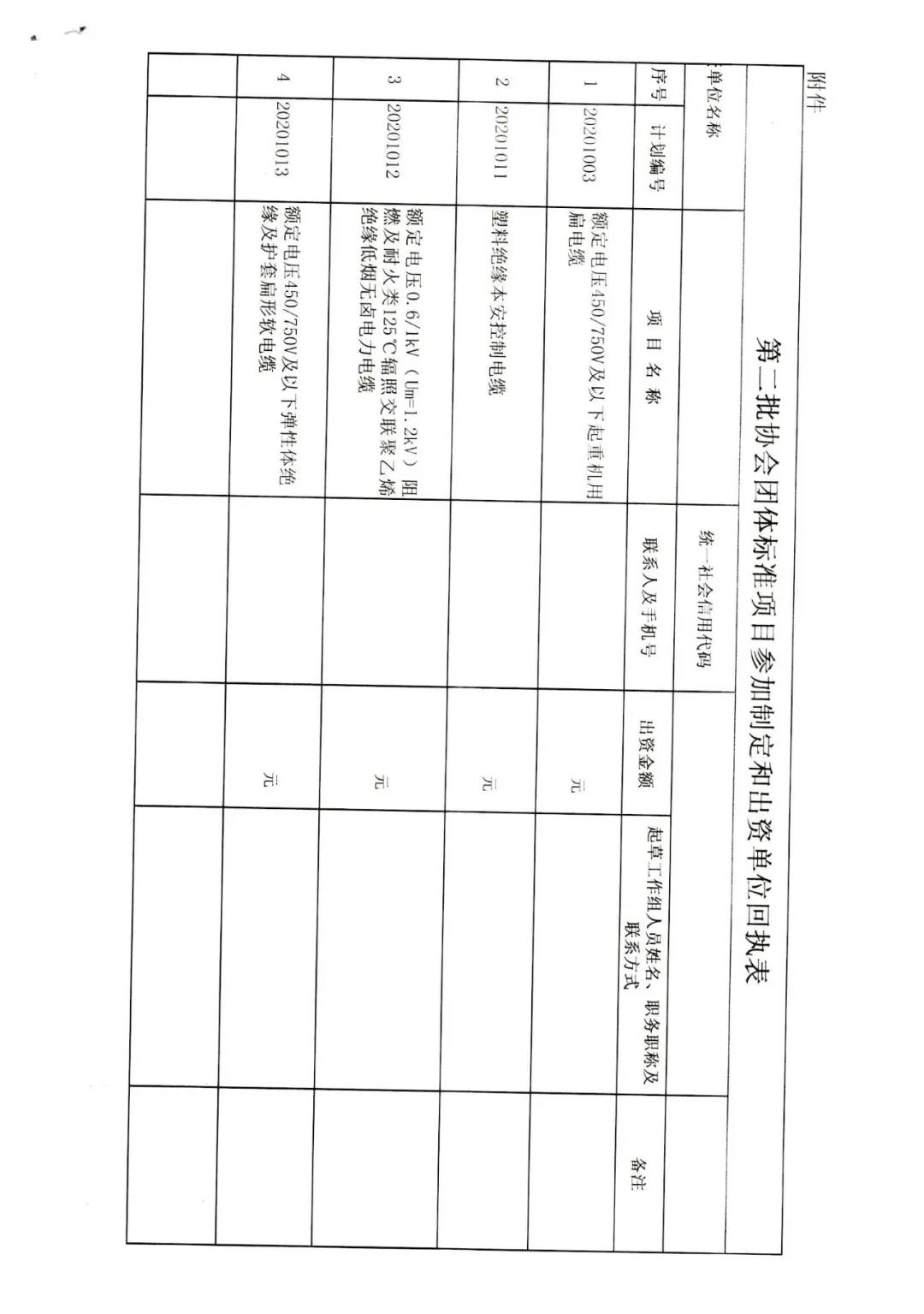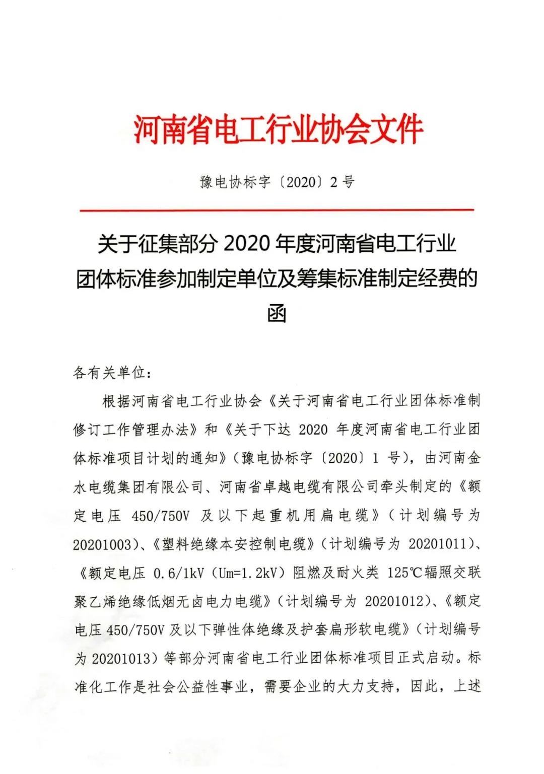 关于征集部分2020年度电工行业团体标准参加制定单位及筹集标准制定经费的函