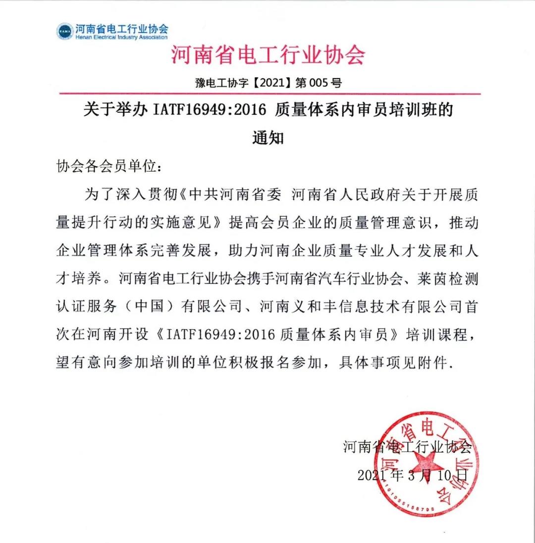 【通知】关于举办IATF16949:2016质量体系内审员培训班的通知