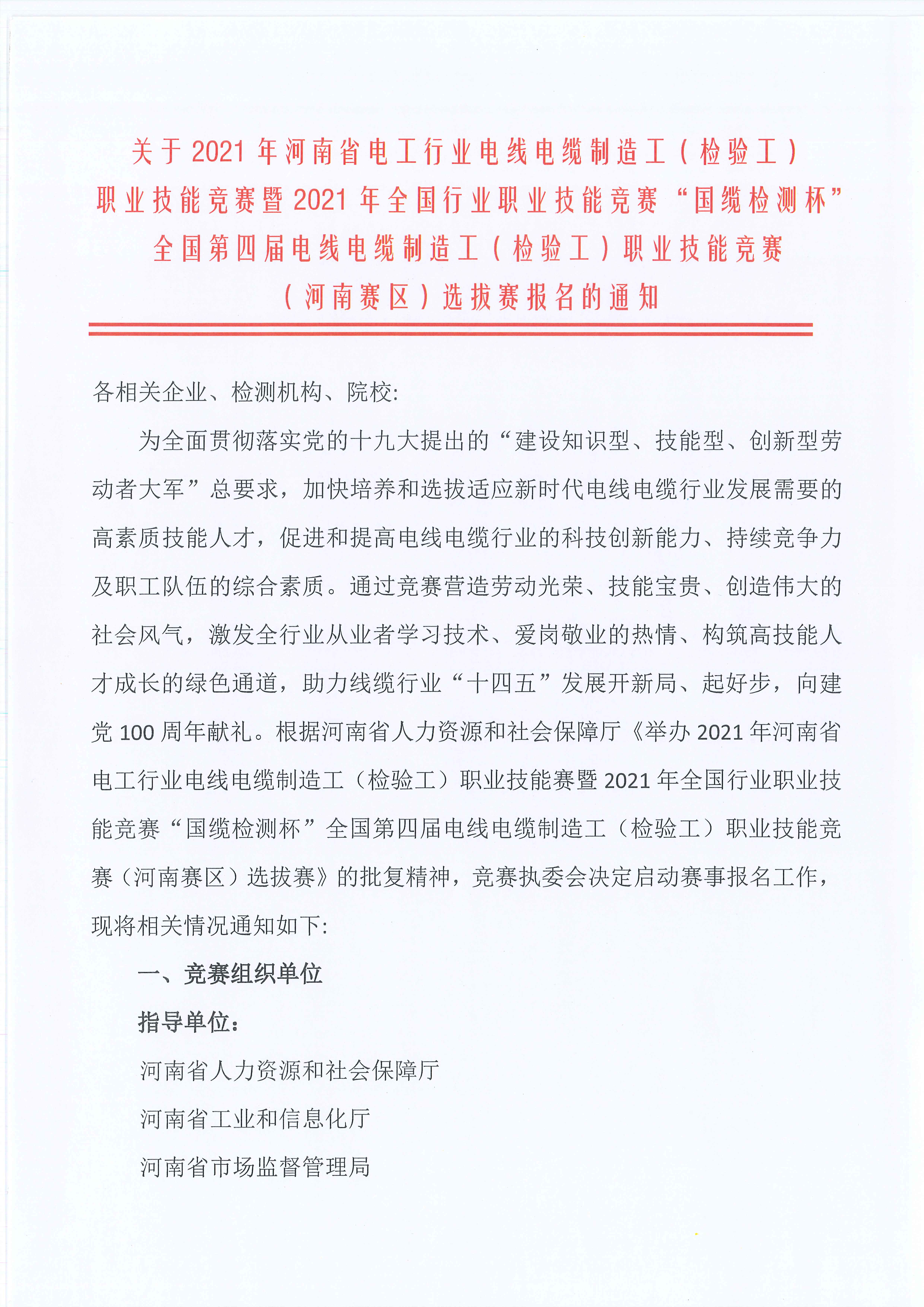 【报名结束】2021省电线电缆竞赛暨全国选拔赛报名通知