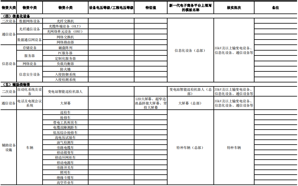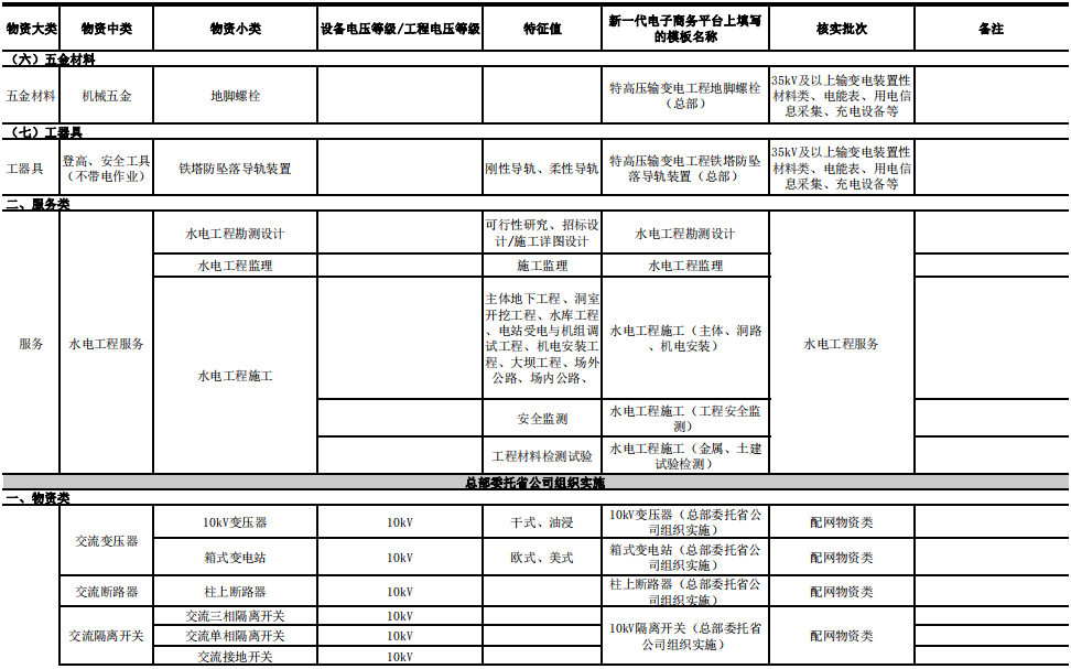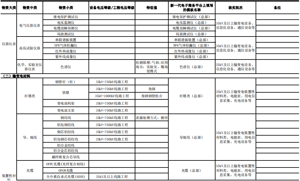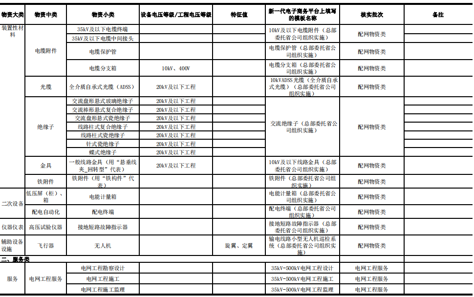 核实范围主要包括10千伏及以上输变电设备、材料,通信设备,信息化设备,营销类物资,辅助类物资,仪器仪表,五金材料,工器具,35千伏-500千伏输变电工程设计、施工、监理和水电工程服务等,具体核实范围详见附件1。